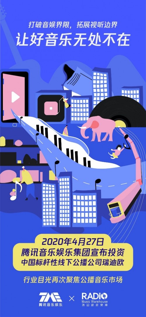 4月27日消息,腾讯音乐正式宣布通过股权形式投资中国标杆性线下公播公司瑞迪欧,并拥有未来进一步增持获得控股权的权利,预示日后双方将在公播音乐领域展开一系列紧密合作。