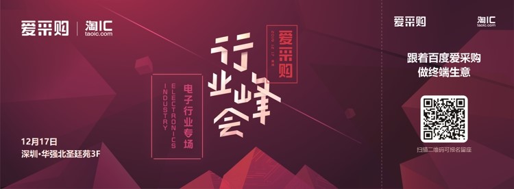 为了深入了解电子元器件企业的诉求,帮助入驻爱采购的商户获取到更多的终端订单,由百度爱采购主办,淘IC承办,深圳市芯片行业协会协办的“爱采购行业峰会--电子行业专场”活动,将在2019年12月17日,深圳·华强北中