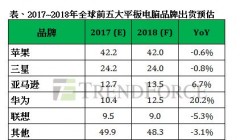 平板电脑经过连续四年的修正,2017年可能出现落底盘整的迹象。全球市场研究机构集邦咨询最新研究指出,2017年平板电脑出货约1.489亿台,年衰退收敛到5.4%。展望2018年,由于几个主要品牌出货衰退趋于和缓,加上亚马逊