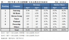 根据集邦咨询半导体研究中心(DRAMeXchange)调查显示,2017年第三季度的DRAM产业营收表现又再度创下历史新高,受惠于传统销售旺季加上供给端成长有限,各类DRAM产品合约价普遍较前一季再上涨约5%。从市场面观察,第三
